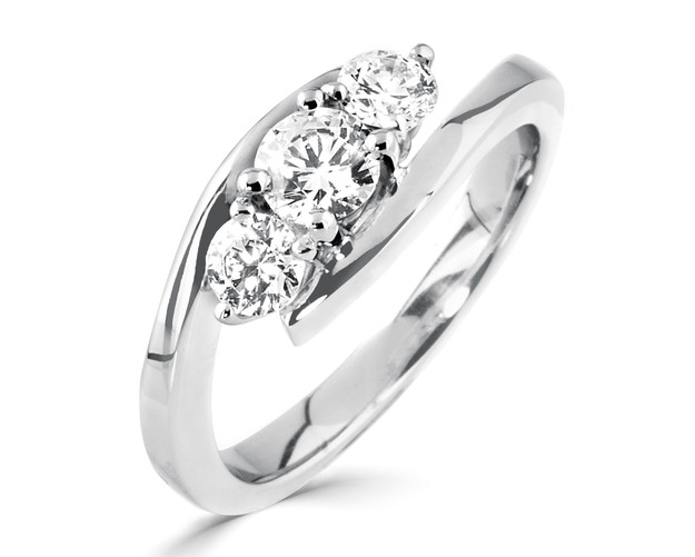 Three Stone Crossover Round Diamond Ring With Plain Shoulders